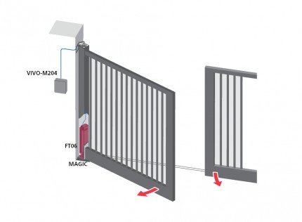 Motor integrado para puertas batientes de hasta 250 kg. y 3,5 mts. por hoja, 230Vac.